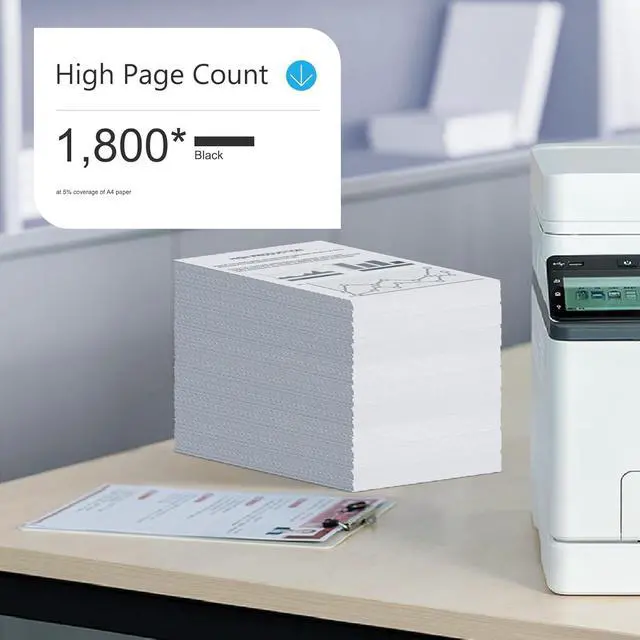 Black is 1800-3300 pages per cartridge and 5% coverage. Excellent print quality and Provide low-cost reliable products. Number of Pages Low Cost Per Page