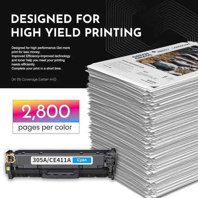 Page Yield: Up to 2,800 pages for 305A |CE411A toner cartridge Cyan(Letter A4, at 5% coverage)