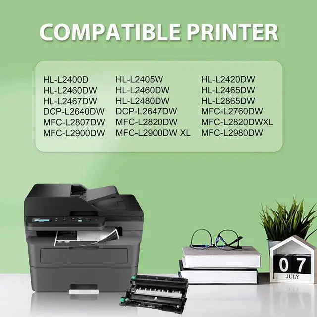 Compatible PrinterCompatible for Brother HL-L2400D, HL-L2405W, HL-L2420DW, HL-L2460DW, HL-L2460DW XL, HL-L2465DW, HL-L2467DW, HL-L2480DW, HL-L2865DW, DCP-L2640DW, DCP-L2647DW, MFC-L2760DW, MFC-L2807DW, MFC-L2820DW, MFC-L2820DWXL, MFC-L2900DW, MFC-L2900DW XL, MFC-L2980DW Printers