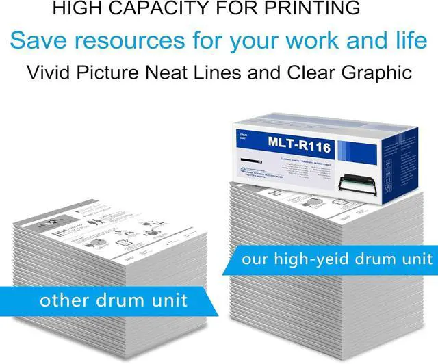 Outstanding Print Quality: MLT-R116 drum unit can bring you true to life images, sharp text and crisp graphics, which will continue to provide you with high print volume to make your printing life easier
