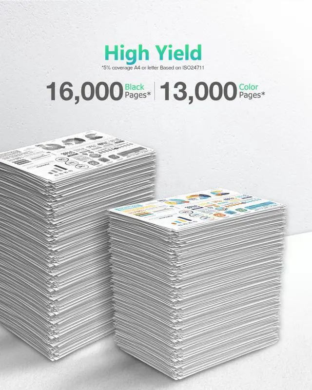 Page Yield: Approximately 16,000 pages per 659A Black and 13,000 pages per 659A Color Toner Cartridge at 5% coverage of A4/letter.