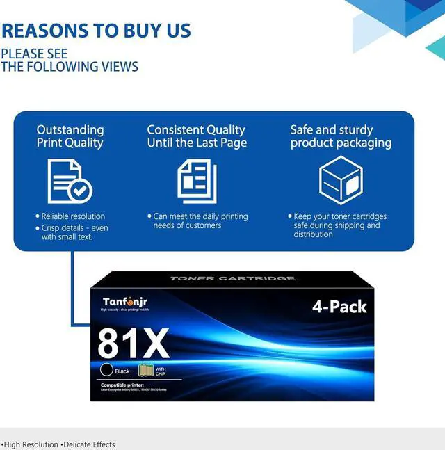 TANFENJR 81X | CF281X Toner Cartridges are of high-quality, reliable printing and save time by avoiding common printing problems, a replacement or refund is available for any usage issue