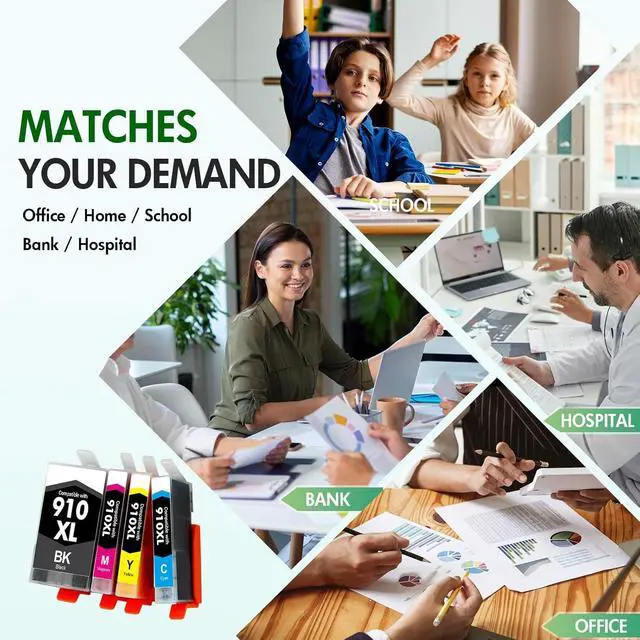 High Page Yield:It yields up to 1,200 pages for each 910XL Black Ink1000 pages for each 910XL color Ink at 5% coverage (A4/letter)
