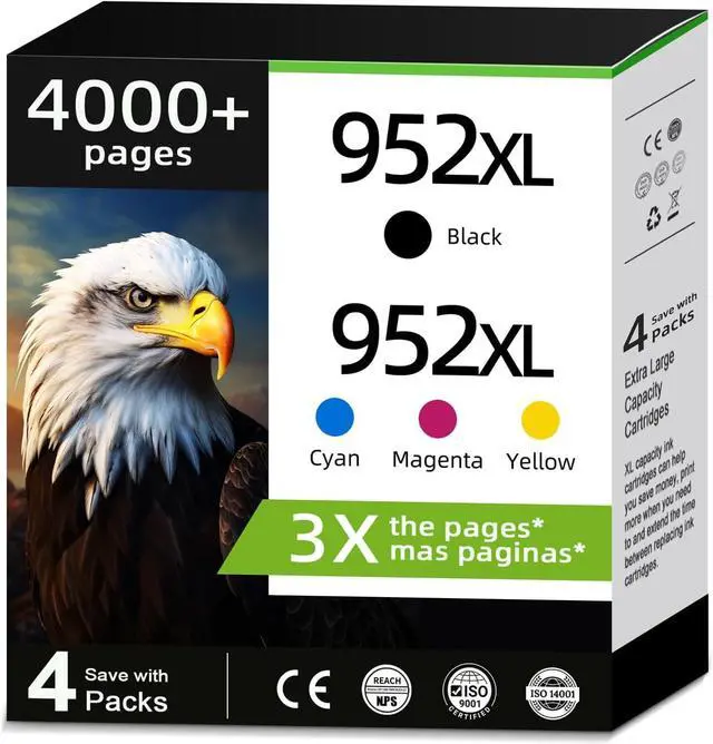 2.5-3x more capacity for 952xl ink cartridge yield (approx.) per cartridge: 2,200 pages black, 1,800 pages cyan/magenta/yellow