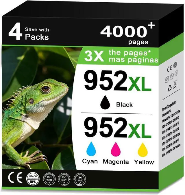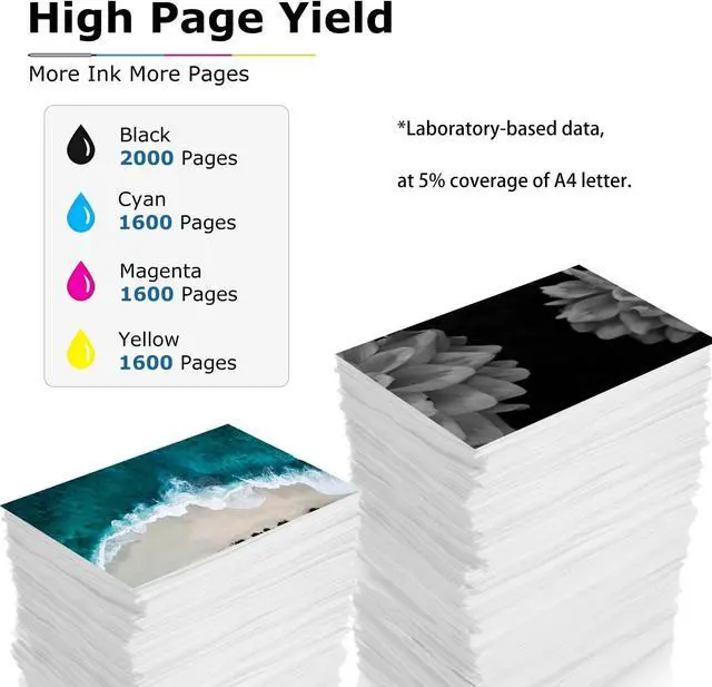 High Page Yield: Up to 2000 Pages for 952 XL Black ink cartridge & 1600 pages for each 952XL Cyan Magenta Yellow Color ink cartridge, at 5% page coverage (Letter/A4)