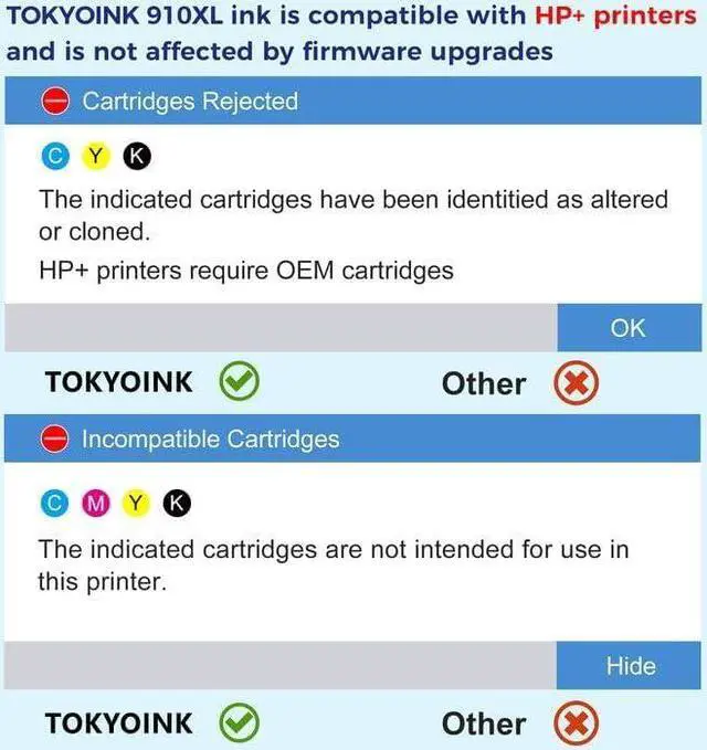 Compatible for hp ink 910 printers : Compatible with OfficeJet 8010 8015 8018 8022 and OfficeJet Pro 8020 8025 8028 8035 Models.