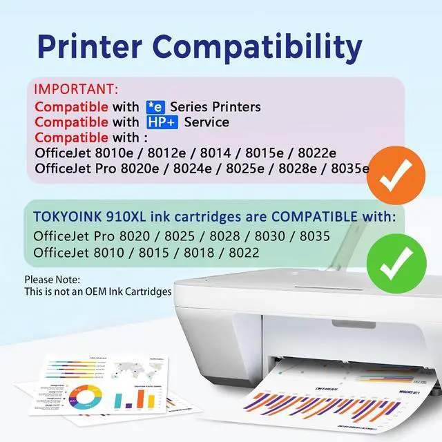 Compatible for hp ink 910xl *E series printers: Compatible with OfficeJet 8010e 8012e 8014e 8015e 8022e and OfficeJet Pro 8020e 8024e 8025e 8028e 8035e Models.