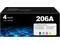 Replacement for 206a Toner Cartridges 4 Pack Page Yield: 206A black toner up to 1,350 pages, 206A color toner up to 1,250 pages