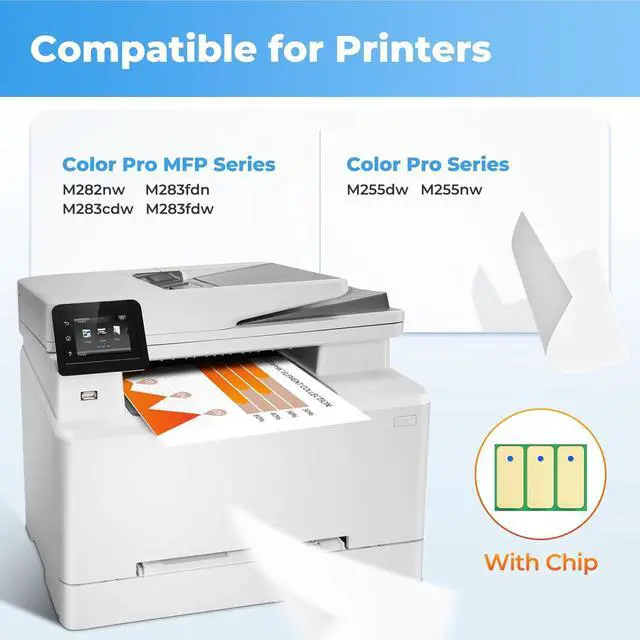 Compatible for hp 206A 206X Toner Cartridges 4 Pack Printer Modelcompatible for hp color laser jet pro m283fdw toner cartridges, color laser jet pro mfp m283cdw toner cartridges, color laser jet pro m255dw toner cartridges , color laser jet pro mfp m283fdn toner cartridges, color laser jet pro mfp m282nw toner cartridges, color laser jet pro mfp m255nw toner cartridges.