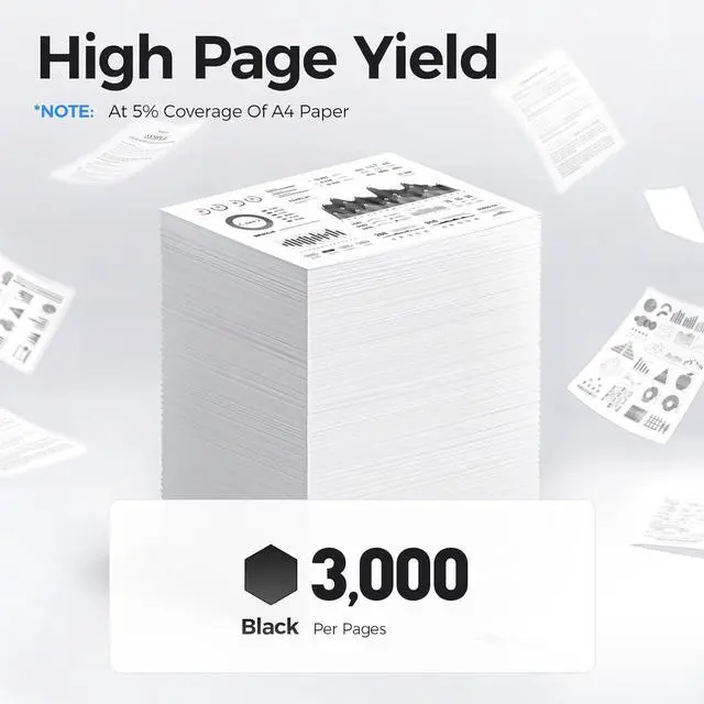 High-Yield: up to 3,000 pages per B230/B225/B235 Black toner cartridge (Total 6,000 pages, 5% coverage).