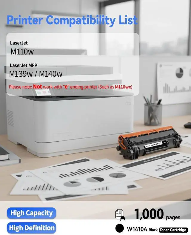 Guaranteed CompatibilityONLY Works with Laser Jet M110w, M139w, M140w ( NOT for ends in e models)