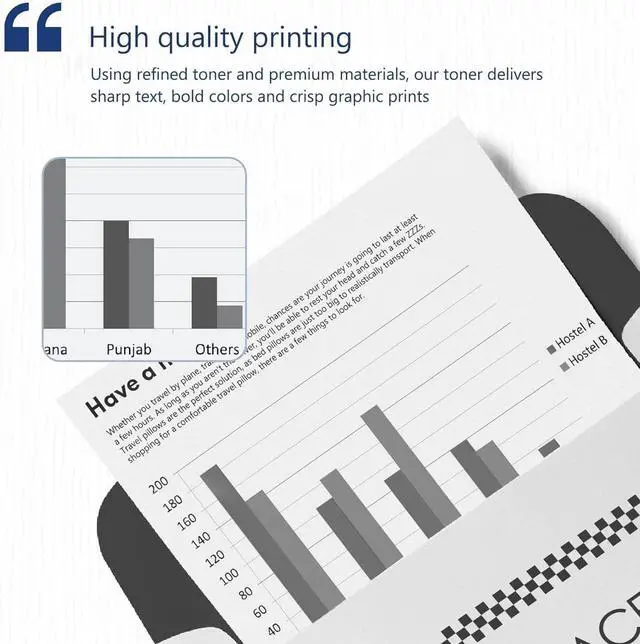 Outstanding print quality: TN-820 toner cartridge Delivers Sharp text edges, clear image hierarchies, legible small print documents, and precise lines without halos on complex charts and graphs