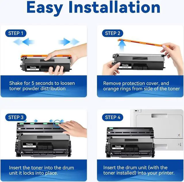 For TN436 toner cartridges replacement for Brother printer equipped with latest intelligent chips, undergoes strict quality control, makes sure quick and easy installation and instant recognization.