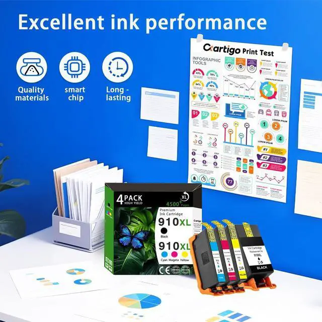 High quality: Our 910XL Ink Cartridges deliver vibrant, smudge-free prints with sharp text and rich colorsperfect for businesses, schools, hospitals, or frequent home users who demand professional results