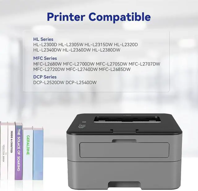 Compatible Printers: Compatible for Brother HL-L2300D, HL-L2320D, HL-L2340DW, HL-L2360DW, HL-L2360DN, HL-L2365DW, HL-L2380DW, DCP-L2500D, DCP-L2520D, DCP-L2520DW, DCP-L2540DN, DCP-L2540DW, DCP-L2560DW, MFC-L2700DW, MFC-L2700D, MFC-L2720DW, MFC-L2740DW.