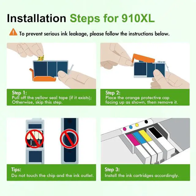 Package Content: Ink 910XL 910 Black and Color Combo Pack (1 × 910XL Black, 1 × 910XL Cyan, 1 × 910XL Magenta, 1 × 910XL Yellow Ink Cartridges )