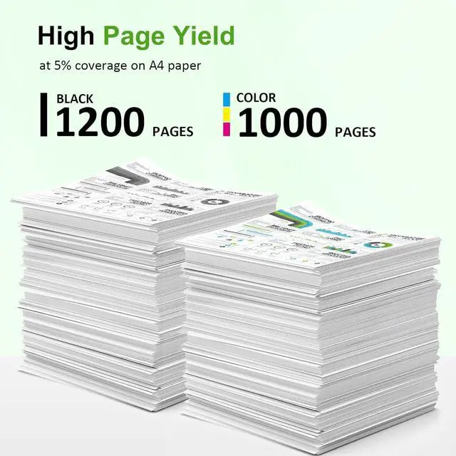High Page Yield: It yields up to 1,200 pages for each 910XL Black Ink1000 pages for each 910XL Color Ink at 5% coverage (A4/letter)