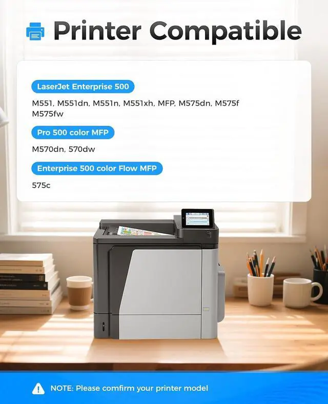 Compatible Printers: Compatible with HP Color LaserJet Enterprise 500 color M551 M551dn M551n M551xh MFP M575dn M575f M575fw, Pro 500 color MFP M570dn 570dw, Enterprise 500 color Flow MFP 575c Series Printer.