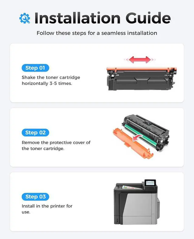 The latest chip version: The JCTONER toner cartridges are equipped with the latest version of built-in chips, ensuring perfect compatibility between each toner cartridge and the printer. This enables you to print efficiently while maintaining stability and reliability, making installation convenient without the need for manual adjustments. All JCTONER toner cartridges have undergone strict quality testing and have obtained ISO9001 certification. High-quality toner cartridges can meet the demand for high printing volume. The fine toner ensures clear and stain-free printing results and extends the lifespan of the printer. You can purchase with confidence.