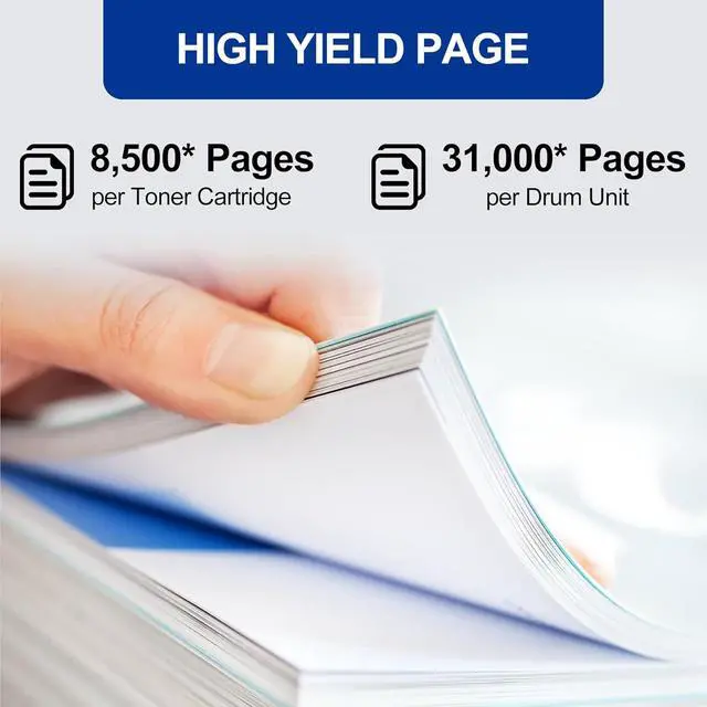 Estimated Page Yield: 8,500 pages high resolution print per TN850 TN-850 black Toner Cartridge at 5% coverage; 31,000 pages high resolution print per DR820 DR-820 black Drum Unit at 5% coverage.