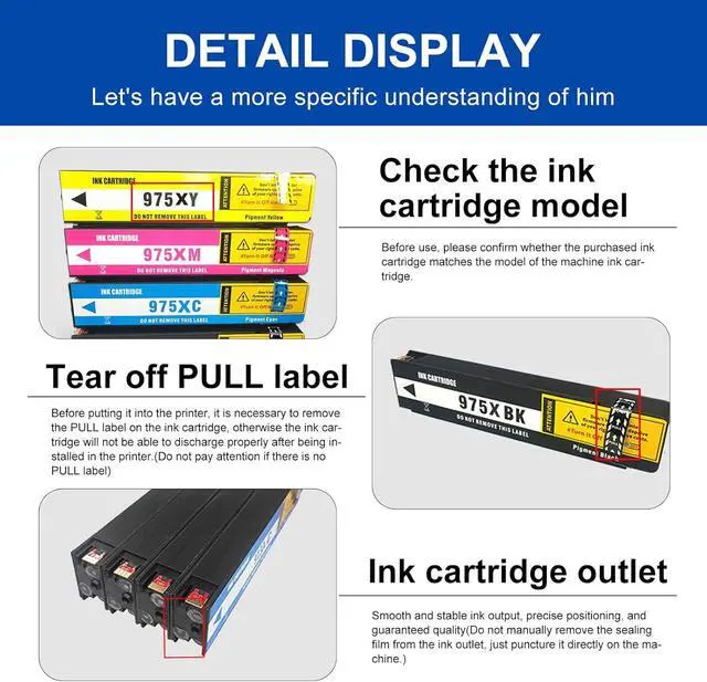 Compatible for ink cartridge model:For HP 975X BK ink cartridges