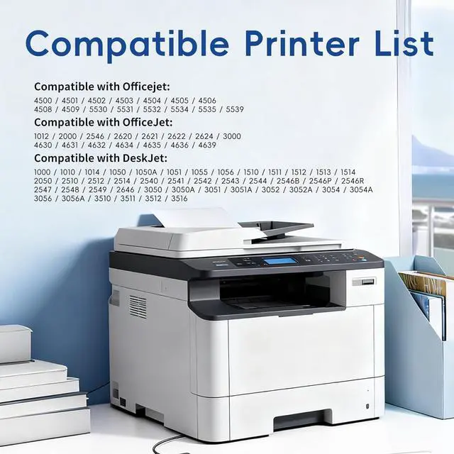 Compatible for printer: Envy 4500 4501 4502 4503 4504 4505 4506 4508 4509 5530 5531 5532 5534 5535 5539, OfficeJet 1012 2000 2546 2620 2621 2622 2624 3000 4630 4631 4632 4634 4635 4636 4639, DeskJet 1000 1010 1014 1050 1050A 1051 1055 1056 1510 1511 1512 1513 1514 2050 2510 2512 2514 2540 2541 2542 2543 2544 2546B 2546P 2546R 2547 2548 2549 2646 3050 3050A 3051 3051A 3052 3052A 3054 3054A 3056 3056A 3510 3511 3512 3516 Printer