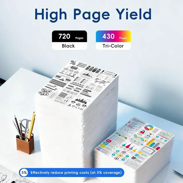 High Page Yield: 430 pages per color 61XL ink cartridges, 720 pages per black 61XL ink cartridges (Letter A4, at 5% coverage)