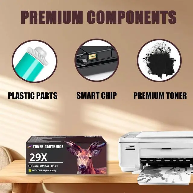 Our advantages: 29X C4129X toner cartridge has a built-in precision smart chip that can accurately monitor the toner level.it has undergone rigorous testing, and features leak-proof reliability and smooth printing