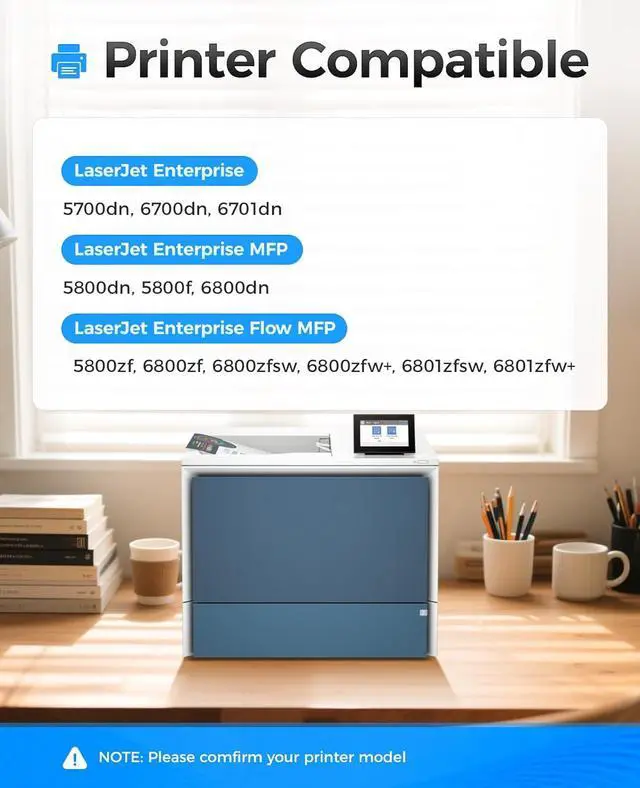 Compatible Printers: Compatible with HP Color LaserJet Enterprise 5700dn 6700dn 6701dn, Color LaserJet Enterprise MFP 5800dn 5800f 6800dn, Color LaserJet Enterprise Flow MFP 5800zf 6800zf 6800zfsw, Color LaserJet Enterprise Flow MFP 6800zfw+ 6801zfsw 6801zfw+ Series Printer.