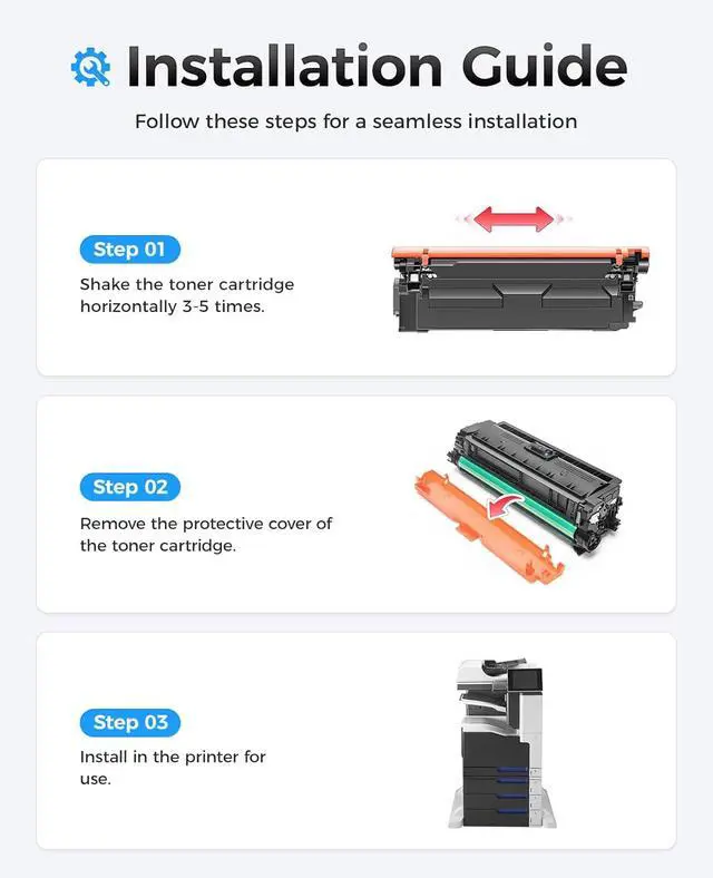 • The latest chip version: The JCTONER toner cartridges are equipped with the latest version of built-in chips, ensuring perfect compatibility between each toner cartridge and the printer. This enables you to print efficiently while maintaining stability and reliability, making installation convenient without the need for manual adjustments. All JCTONER toner cartridges have undergone strict quality t