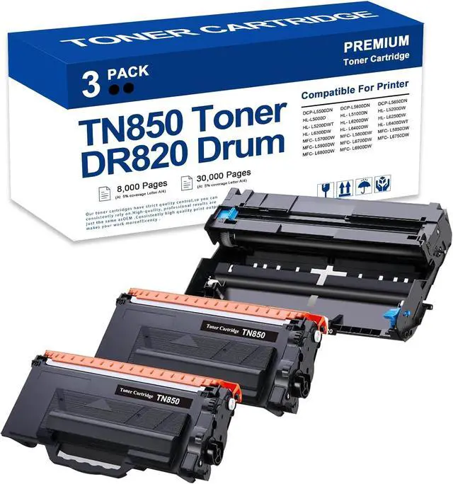 Product Included:Come up with 3-Pack products,Corapipo TN850 High Yield Toner Cartridge 2-Pack, 1 Pack DR820/DR-820 Drum Unit,TN850 Toner Cartridge and DR820 Drum Unit Compatible for Brother TN850 TN-850 DR820 DR-820