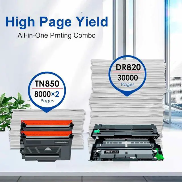 High Page Yield: 8,000 pages per TN-850 Toner Cartridge,DR 820 ups to 30,000pages(based on 5% coverage) .2Pack TN850 Toner,printing longer , and helps limit replacements