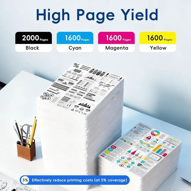 High Page Yield: 2000 pages per black 952XL ink cartridges, 1600 pages per color 952XL ink cartridges (Letter/A4, at 5% coverage)
