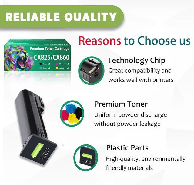 Our Advantages: CX825 CX860 toner cartridge uses premium toner, with fine particles, low scrap rate, and no ink leakage, ensuring sufficient number of printed pages, high color saturation, and clearer color printing, creating a more realistic creation for you and your eyes visual effects