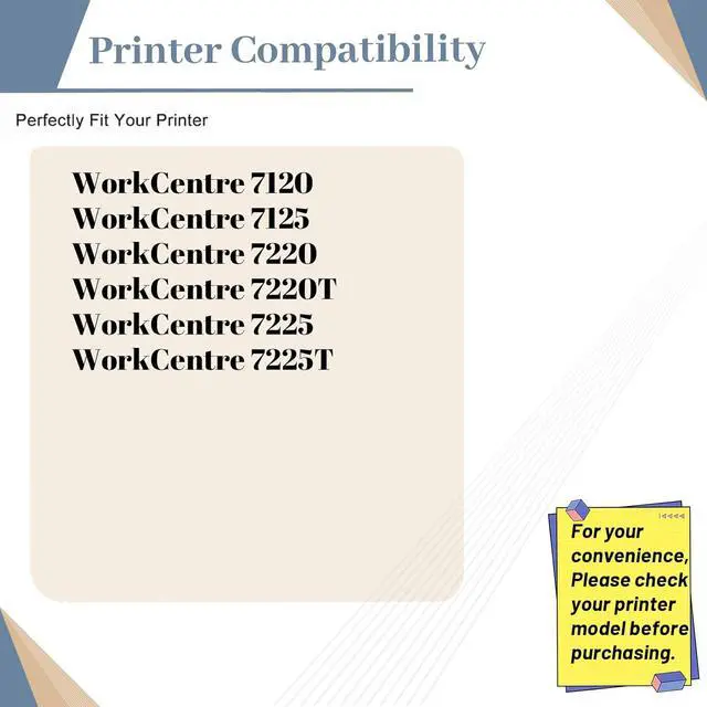 Compatible Printer ModelsFor Xerox WorkCentre 7120 7125 7220 7220T 7225 7225T Printer.[Part Number] 013R00657 013R00658 013R00659 013R00660