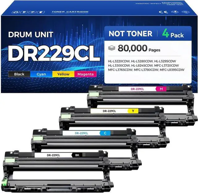 Products Name: 4 Pack New DR-229CL drum unit (Not toner cartridge). Includes one of each drum-black, cyan, magenta and yellow Brother DR229CL drum cartridges.