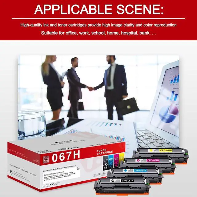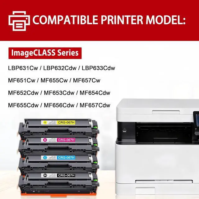 Compatible with: 067H with chip compatible with Canon color imageCLASS LBP631Cw LBP632Cdw LBP633Cdw MF651Cw MF655Cw MF657Cw MF652Cdw MF653Cdw MF654Cdw MF655Cdw MF656Cdw MF657Cdw printer