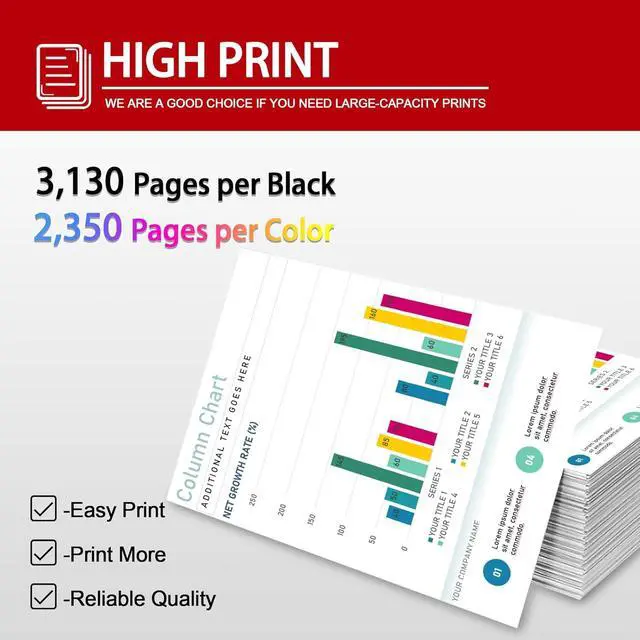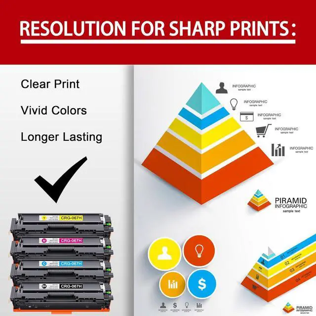 High Page Yield: 067H toner cartridges 4 pack Up to 3,130 Pages for 067H Black Toner Cartridge, up to 2,350 Pages for 067H Color Toner Cartridge(at 5% coverage on Letter/A4 size)