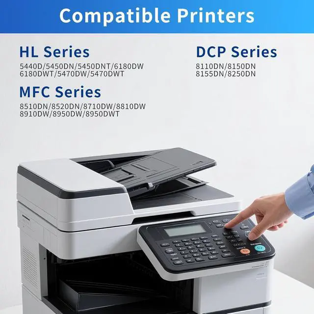 Compatible Printers: HL-5440D 5450DN 5450DNT 6180DW 6180DWT 5470DW 5470DWT MFC-8510DN 8520DN 8710DW 8810DW 8910DW 8950DW 8950DWT DCP-8110DN 8150DN 8155DN 8250DN Printer