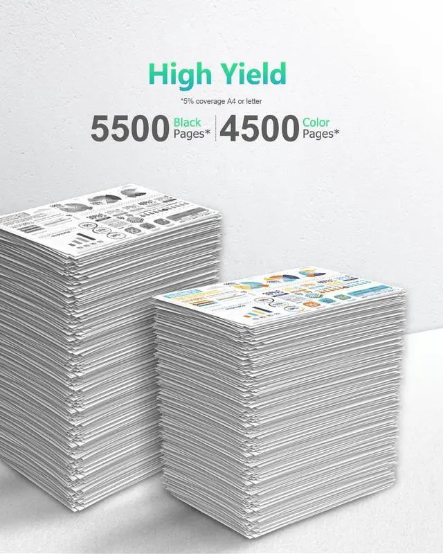 Impressive Yield: Achieve up to 5,500 black and 4,500 color prints per toner cartridge (5% coverage, A4/Letter).
