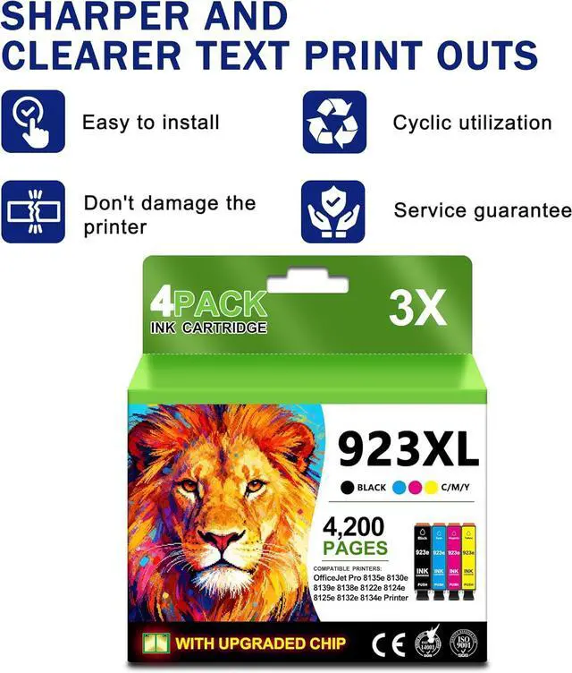 923 cartridge combination is compatible with specific models of printers to ensure a perfect match with your printer. Suitable for high-print scenes, such as offices, schools, studios, etc.High quality print results, capable of presenting clear, colorful images and text. Large capacity design, reduce the frequency of changing ink cartridges, improve work efficiency.