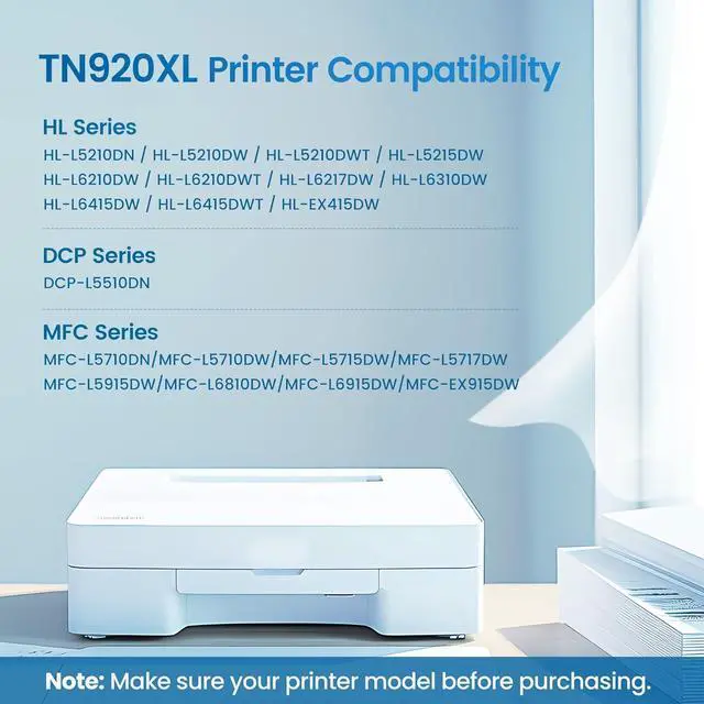 Compatible for Brother Printer: TN920XL TN 920 toner compatibe for Brother HL-L6210DW HL-L6210DWT HL-L5210DN HL-L5210DW HL-L5215DW HL-L6217DW HL-L6310DW HL-L6415DW HL-EX415DW HL-L5210DWT HL-L6415DWT DCP-L5510DN MFC-L5710DN MFC-L5710DW MFC-L5715DW MFC-L5717DW MFC-L5915DW MFC-L6810DW MFC-L6915DW MFC-EX915DW printer.