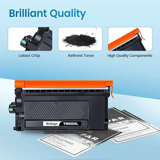 Advantage: Statago high-yield TN 920xl toner cartridges for Brother printer deliver superior image and text quality, adhering to stringent quality standards. Our products are ISO9001 certified for excellence and ISO14001 certified for environmental sustainability.