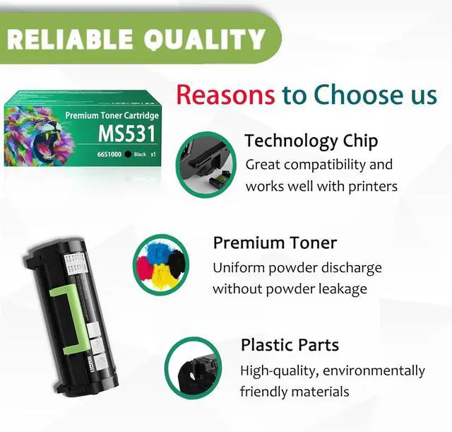 Our Advantages: MS531 66S1000 toner cartridge uses premium toner, with fine particles, low scrap rate, and no ink leakage, ensuring sufficient number of printed pages, high color saturation, and clearer color printing, creating a more realistic creation for you and your eyes visual effects