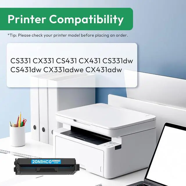 High-Yield for CS331 Cyan Toner Cartridge: With a yield of up to 4,500 pages per 20N1HC0 toner cartridge (at 5% coverage on A4 paper). It reduces replacement frequency and boosts productivity.