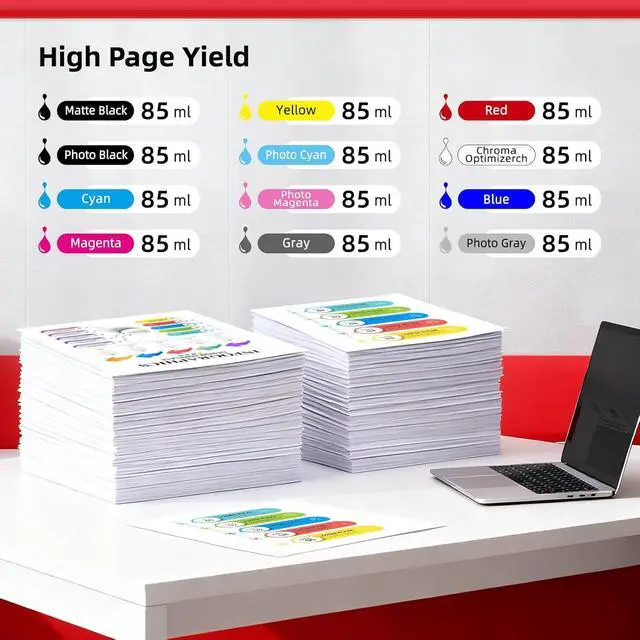 Wonderful Quality: Provides the most vibrant and intense colors, with a rich color palette that can make patterns more realistic and interesting. Clearly depicts fine characters without color bleeding. Pigment inks are waterproof and light-resistant, so they won't fade even outdoors, so you can keep the original look of your prints for a long time