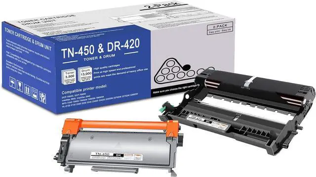 1 Pack TN450 Black Toner Cartridge & 1 Pack DR420 Black Drum Unit replacement for Brother TN450 Toner Cartridge and DR420 Drum Unit.