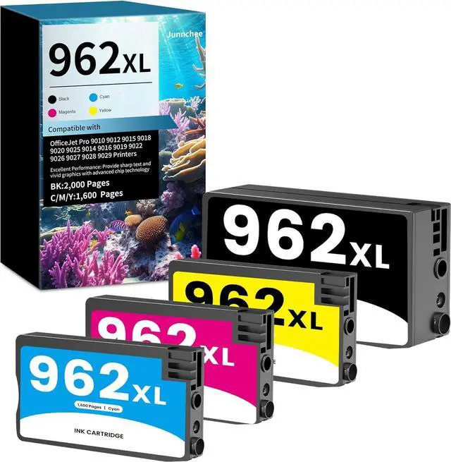 Package Contents: 1× 962xl black high-yield ink, 1× 962xl cyan high-yield ink, 1× 962xl magenta high-yield ink, 1× 962xl yellow high-yield ink