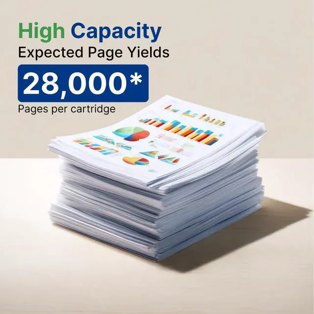 All toner cartridges and Drums have a 100% Satisfaction guarantee. Black 28,000 Colors 26,000 Pages, print more and pay less based on 5% coverage.