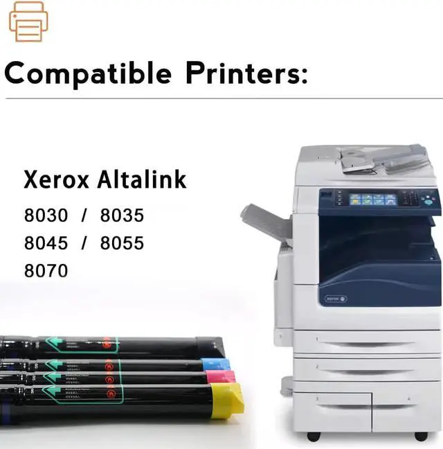 Compatible Printer ModelsCompatible with Xerox AltaLink C8030, C8035, C8045, C8055, C8070 Printers. Part Numbers: 006R01697, 006R01698, 006R01699, 006R01700.